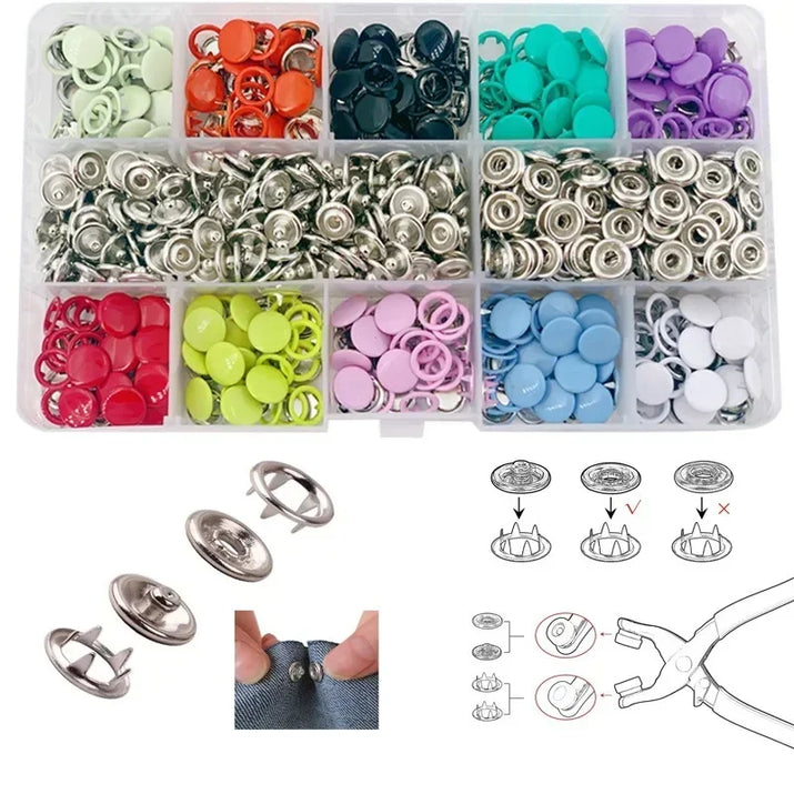 Explore our versatile set of sewing buttons and tools, perfect for adding a pop of color and durability to your sewing projects.