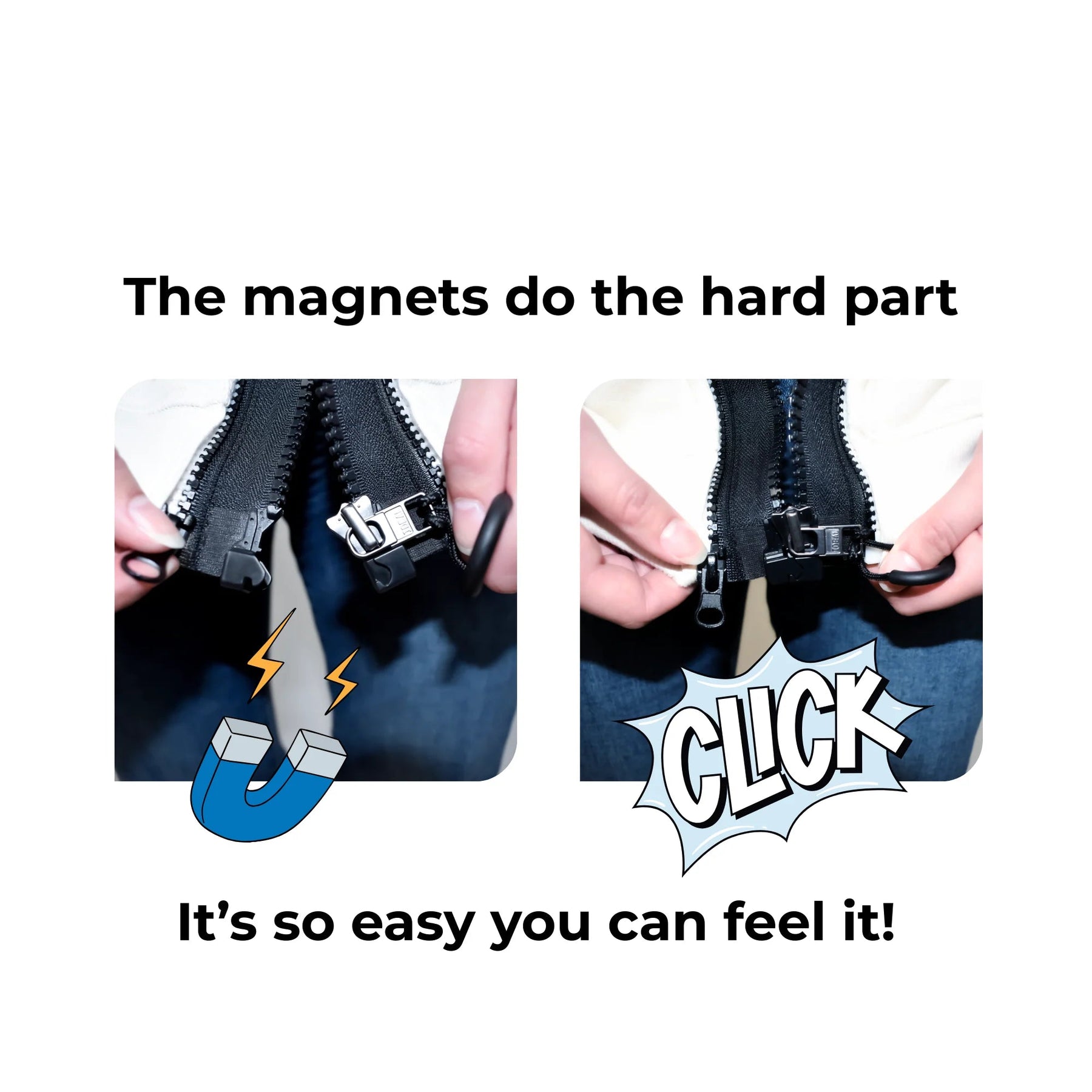 The ZipperBuddy MagZip offers a self-aligning, magnetic closure that fits most standard jacket zippers. It installs with no sewing or permanent changes, making your favorite outerwear instantly easier to zip. It’s especially helpful for those who want one-handed zipping or struggle with small, f